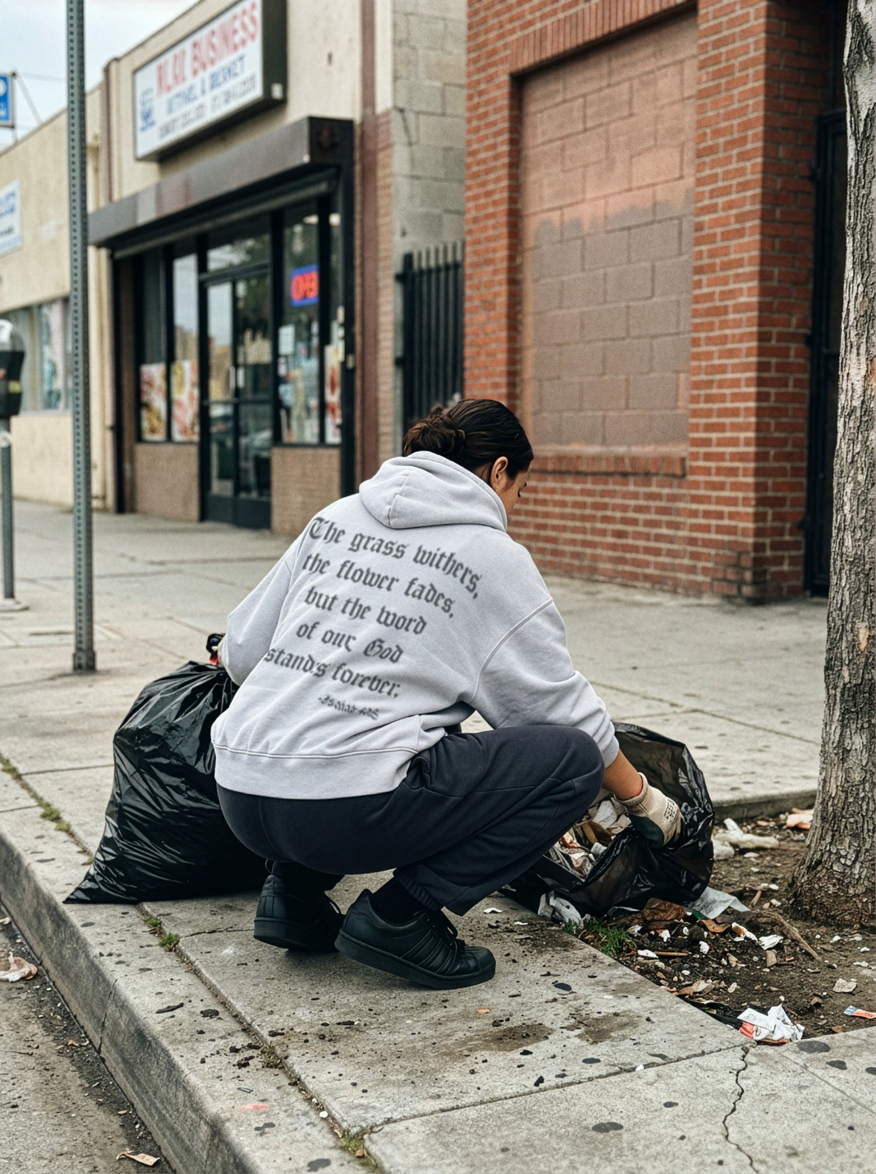 Solid: Faith isn't flimsy, and your clothes shouldn't be either. We reject fast fashion in favor of heavyweight construction—15.5oz French Terry and 7.5oz cottons that feel substantial and permanent. We build garments that stand the test of time, mirroring the unshakeable nature of the Word.