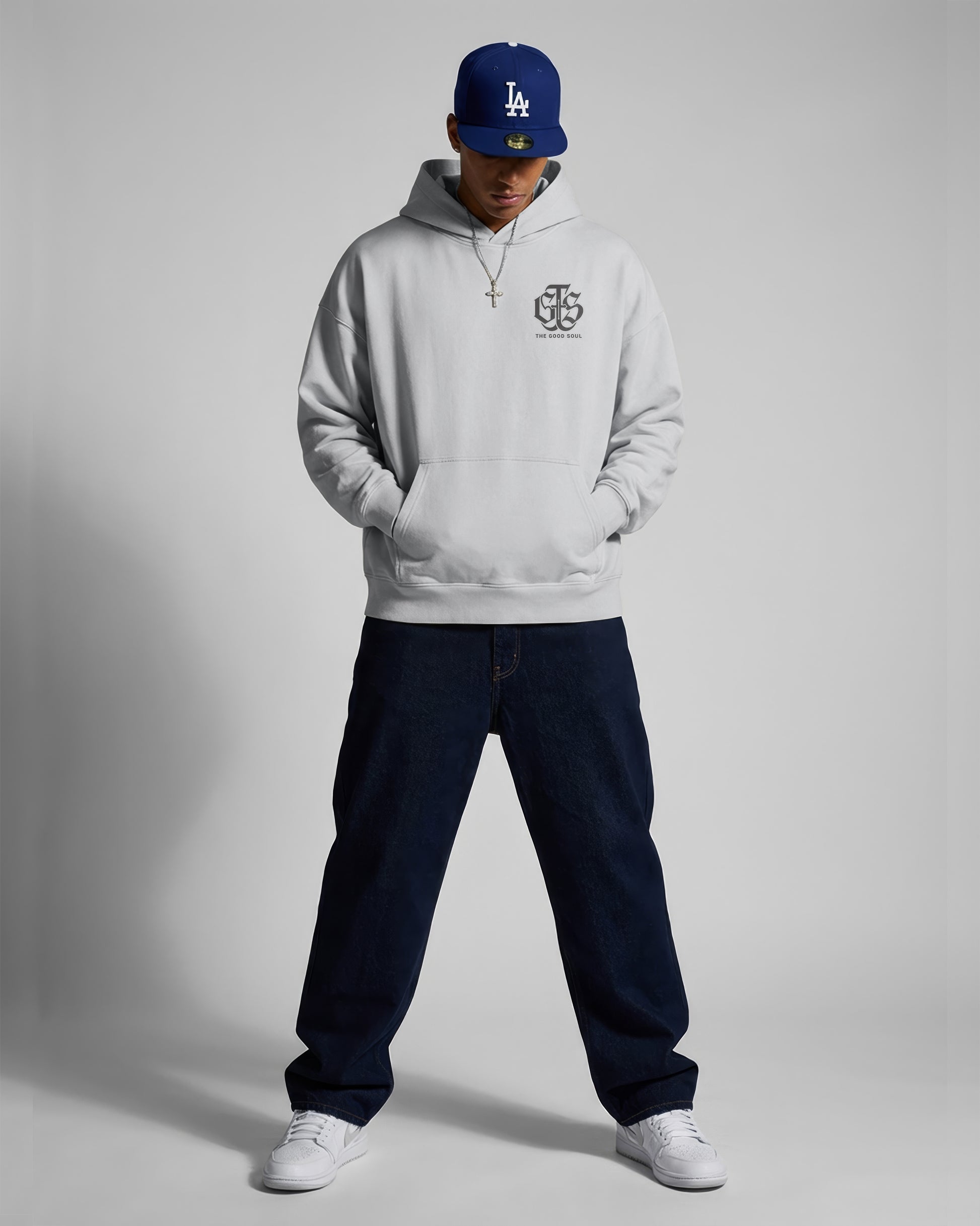 Constructed from an premium ultra-heavy 15.5oz French Terry, this Luxury hoodie isn't designed to be flimsy or fast. It is substantial. It has weight. It feels like armor. The design features our signature tonal approach—a dark grey Gothic print on a Cool Grey body.